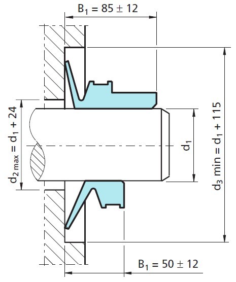 VRM形水封的尺寸經(jīng)常可以從一組直徑范圍內(nèi)選取,如軸的公稱直徑是處于兩組推薦值的邊界范圍外,則應(yīng)選用下一組較大的VRM形水封。