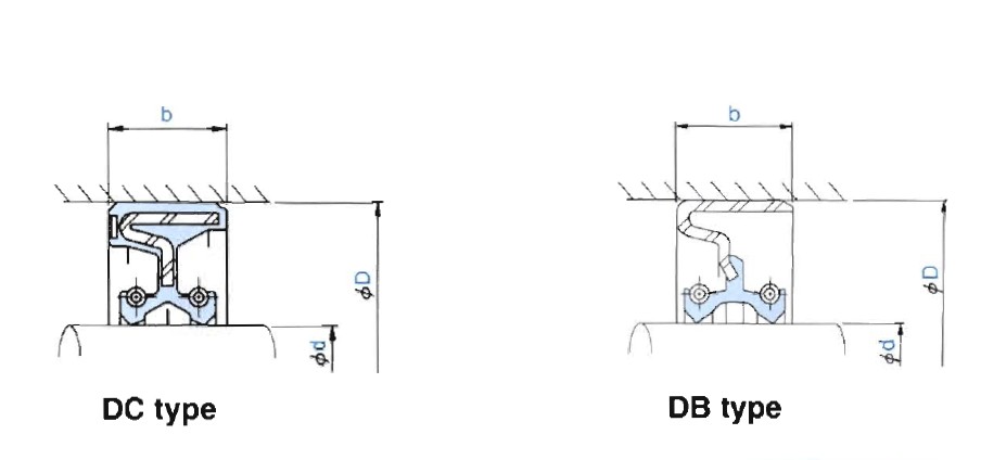 DC和DB型骨架油封由兩個(gè)相反方向的密封唇對置組合形成的油封,主要用于兩種油的密封,可節(jié)省空間。