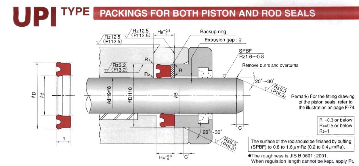 UPI型孔軸兩用密封主要材料是邵爾94度聚氨酯,壓力可達(dá)到35MPA,溫度:-30度---+100度,有極好的耐磨性和密封能力。他有較大的截面,可用于大范圍的操作。